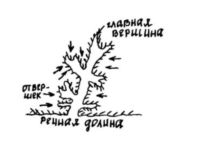 Спочатку утворюється струйчатая ерозія, потім вона поглиблюється і має велику глибину і невелику ширину.