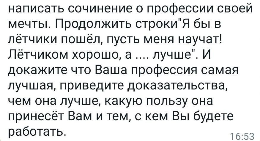 Мне совсем не нравится работа лётчика, я думаю что она не интересная.Быть лётчиком конечно хорошо, но мне кажется Архитектором лучше. Архитекторы строят дома и здания, это очень интересно, и поэтому, я считаю эту профессию самой лучшей !!!