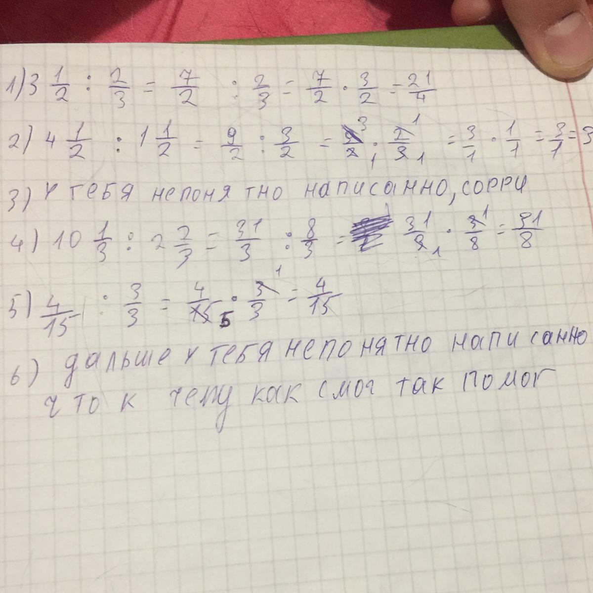 реши деление простых дробей 3 1/2 / 2/3 4 1/2 / 1 1/2 1 3 / 1,1 10 1/3 / 2 2/3 4/15 / 3/3 1/15 4/4 / 3 1 / 11 0 / 5 и 39 / 1 5/31
