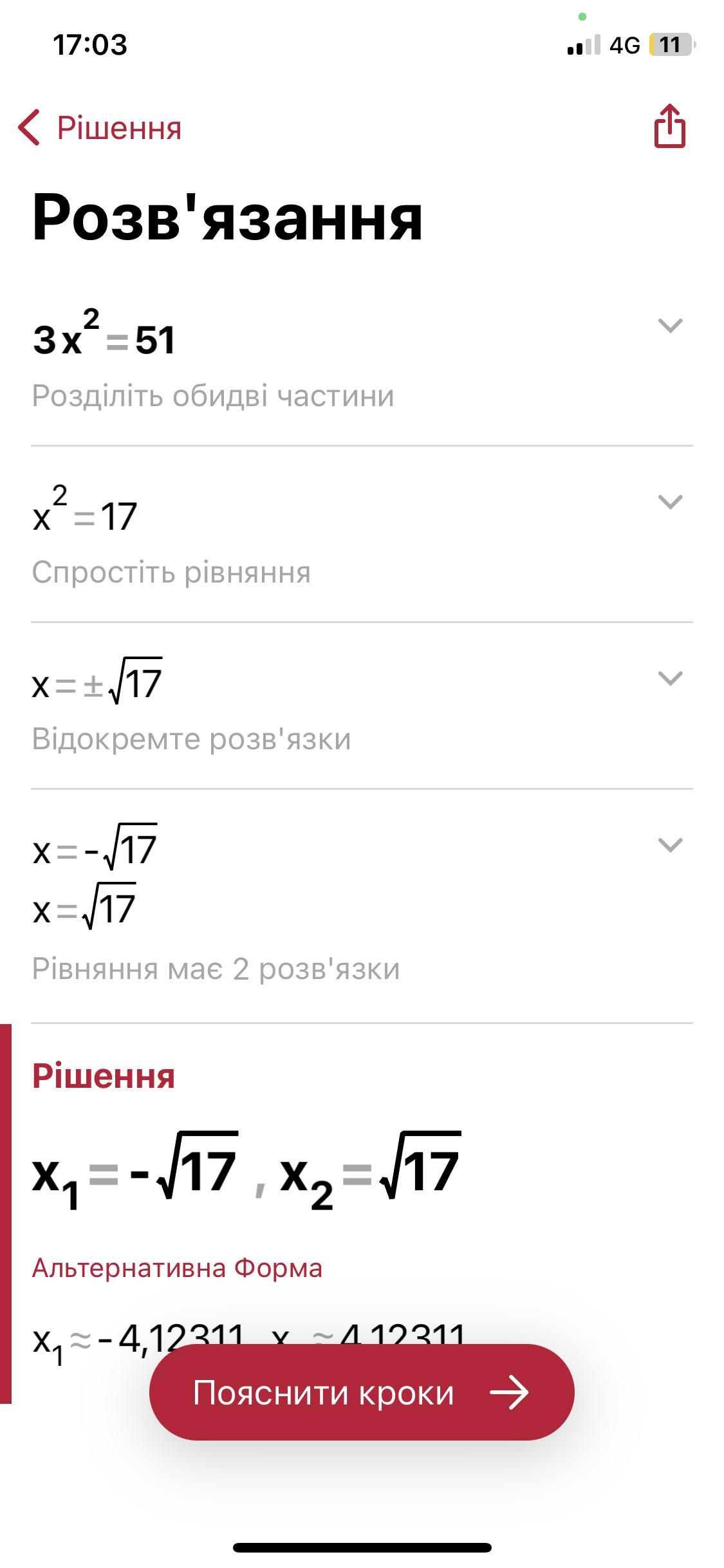 Решите уравнение 3 x^2=51