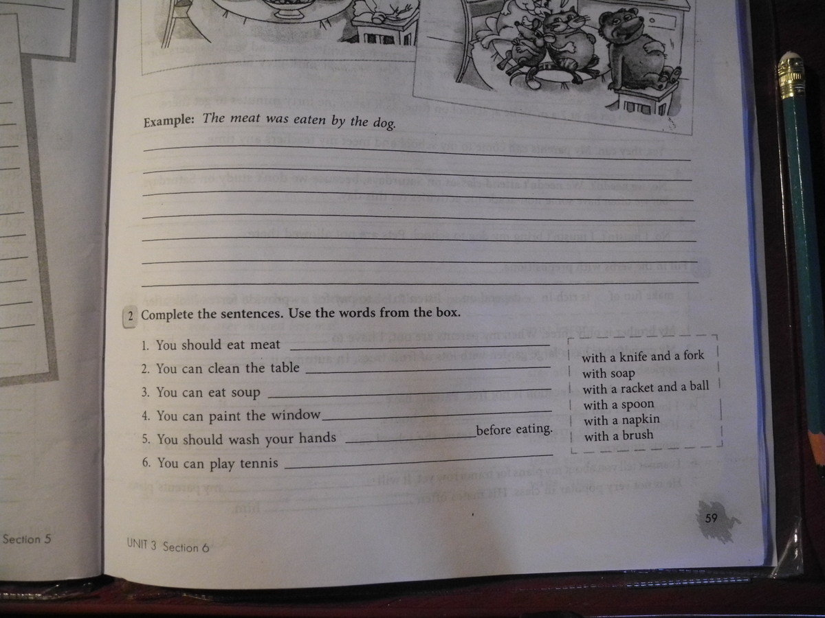 1.with a knife and a fork