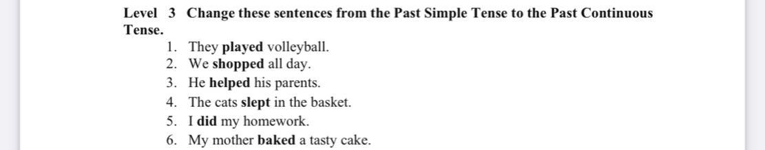 Level 3 Change these sentences from the Past Simple Tense to the Past Continuous