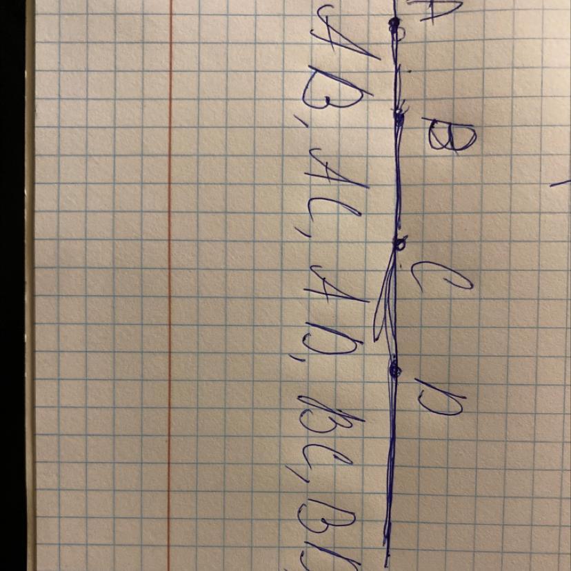 На прямій позначили чотири точки: A, B, C і D. Скільки існує відрізків з кінцями в позначених точках?