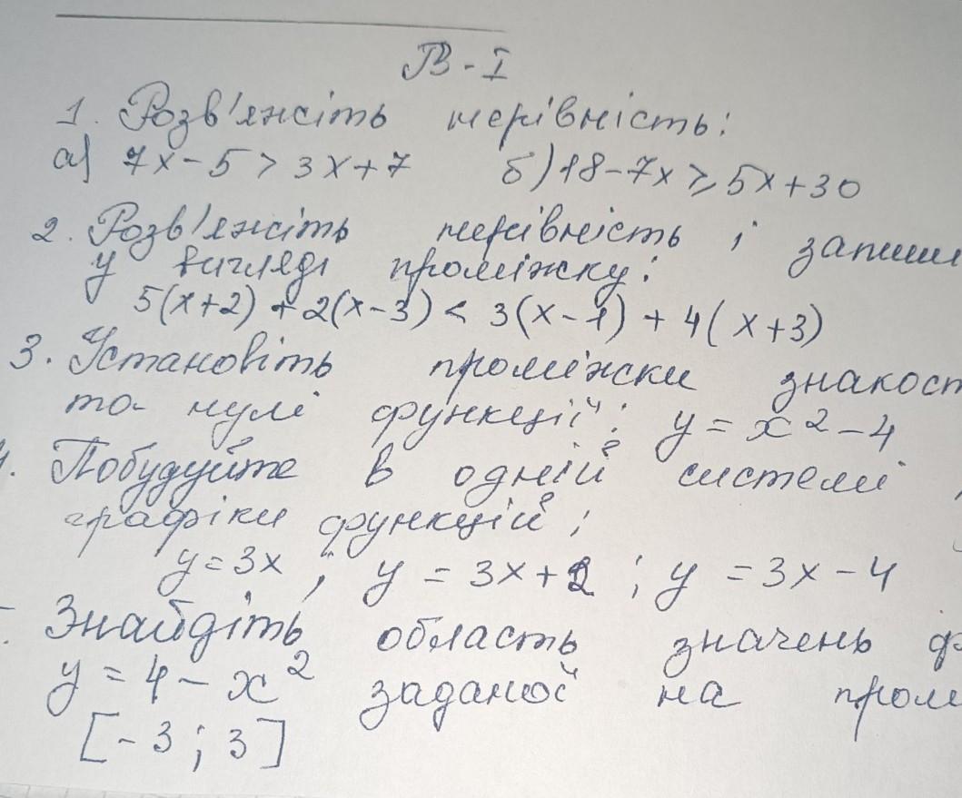 розв'яжіть нерівність і запишіть розв'язок у вигляді проміжку 5(x+2x)+2(x-3)<3(x-1)+4(x+3), хто вирішить всю контрольну , дам 100 балів. Це алгебра.