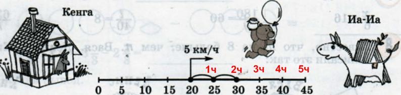 20 + 5 * 5 = 20 + 25 = 45 − точка, в который будет Винни−Пух через 5 ч.