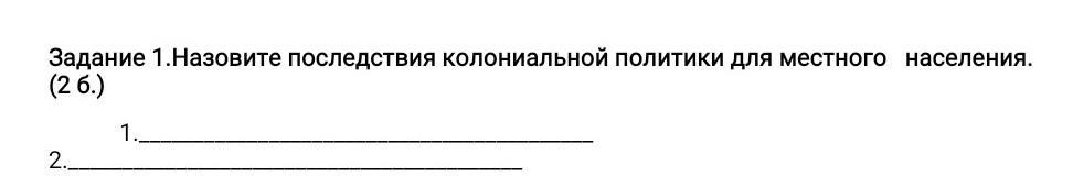 Задание 1.Назовите последствия колониальной политики для местного населения. (26.) 2. 1.