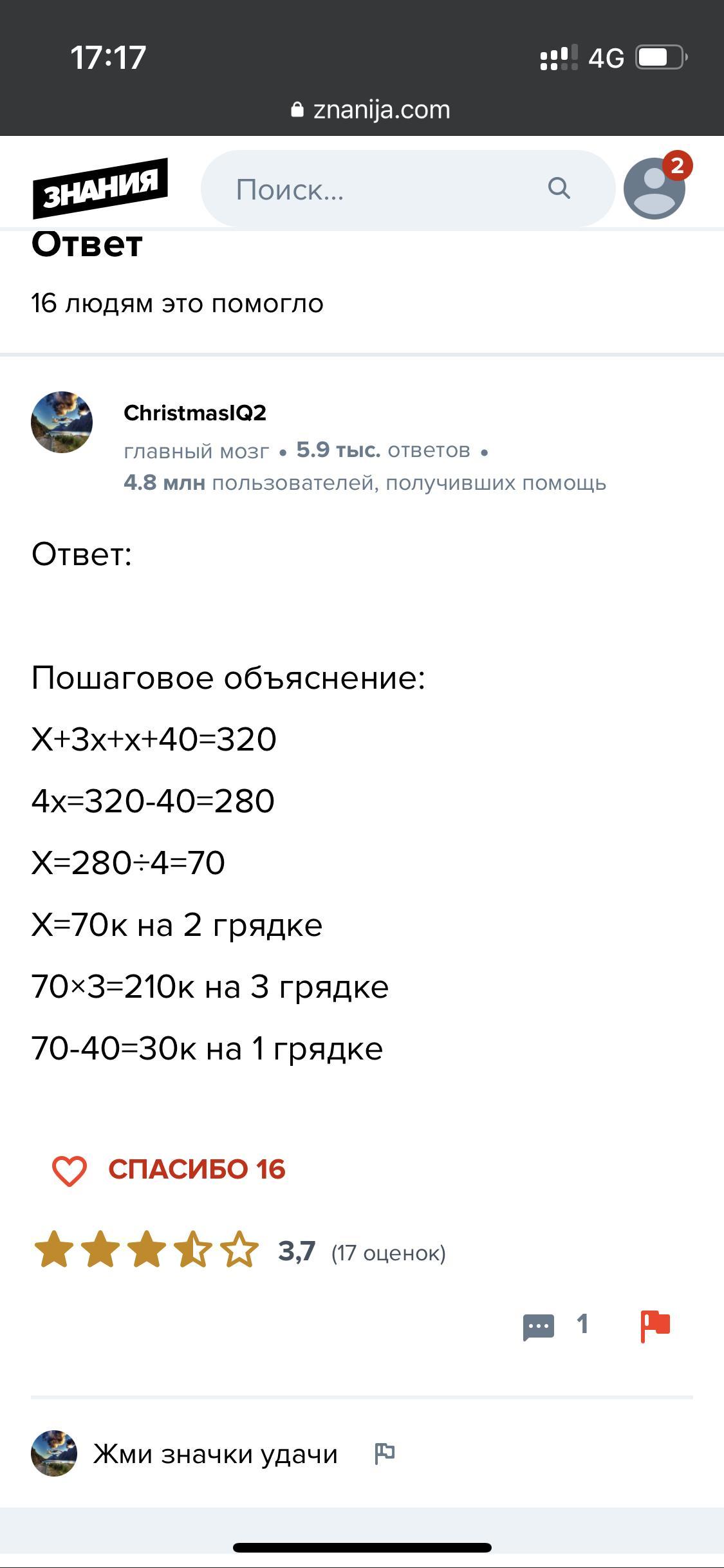 Ответ не сходится: всего было 320 кустов, а с вашим ответом получается 310… что-то не так
