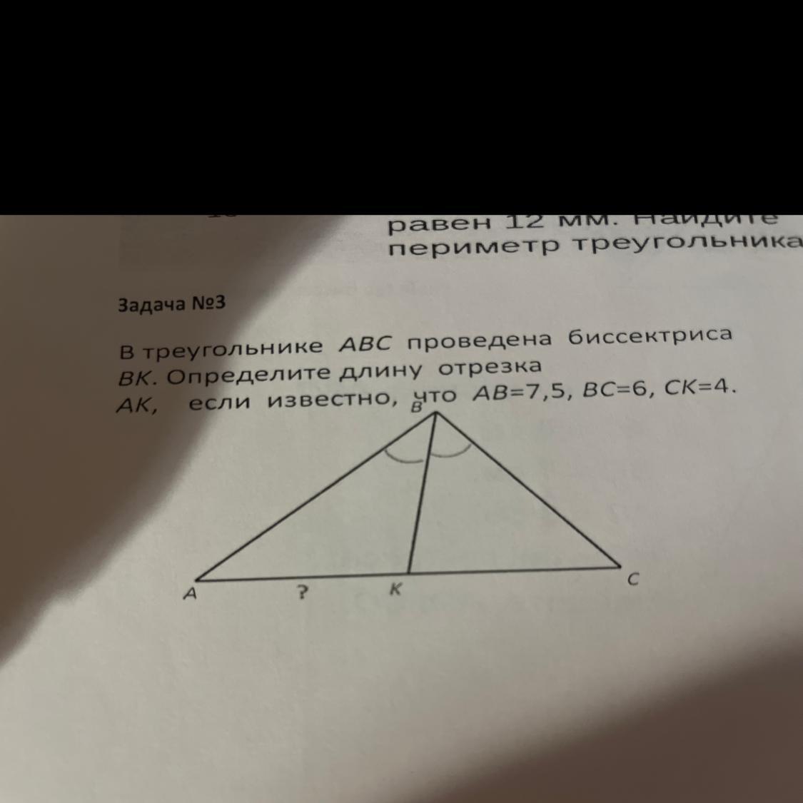 AK, если известно, что AB=7,5, BC=6, CK=4.