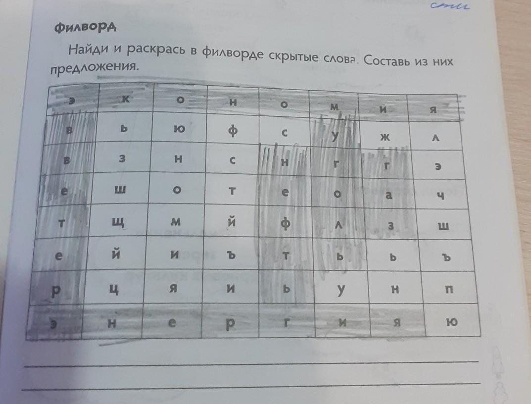 Найди и раскрась в филворде скрытые слова. Составь из них предложения. B T P К b 3 E Щ й Ц H Ю Н O M и Я Н Ф с T й PH и P C T Ь M О у И И Ж b Н я A 3 Ъ n Ю