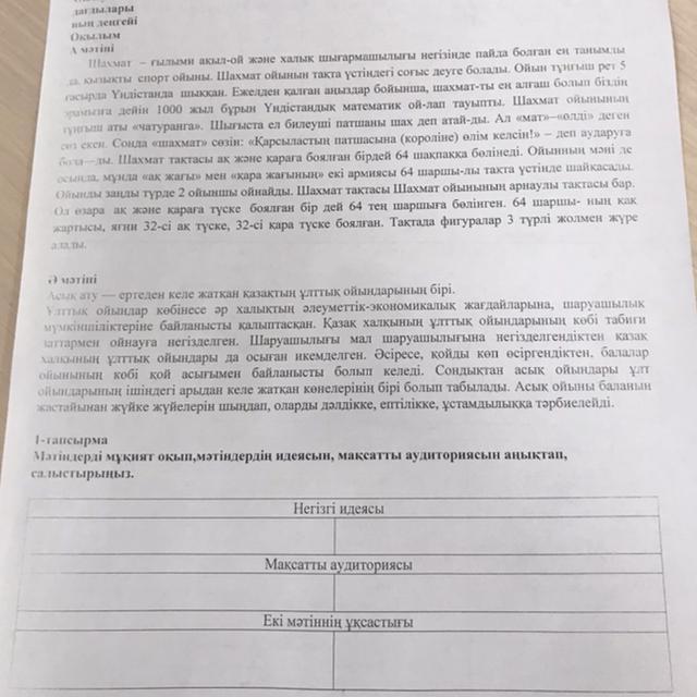 мақсатты аудиториясы: менің ойымша шахматтын қандай ойын қалай ойнайтынын түсіндіру, ал екінші мәтінде асық ату ойынының мағынасын, қалай ойын екенің түсіндіру.