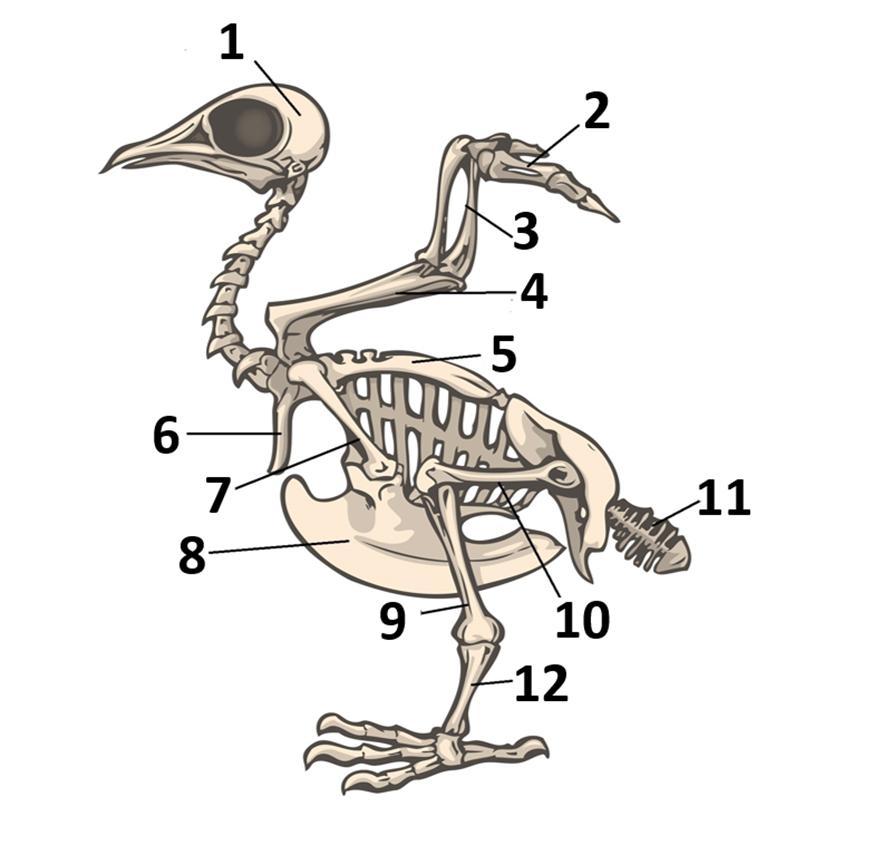 Запишіть частини скелета птаха, що зображені під позначками на малюнку. На бланку відповідей запишіть відповідь біля порядкового номеру. (на рисунке)