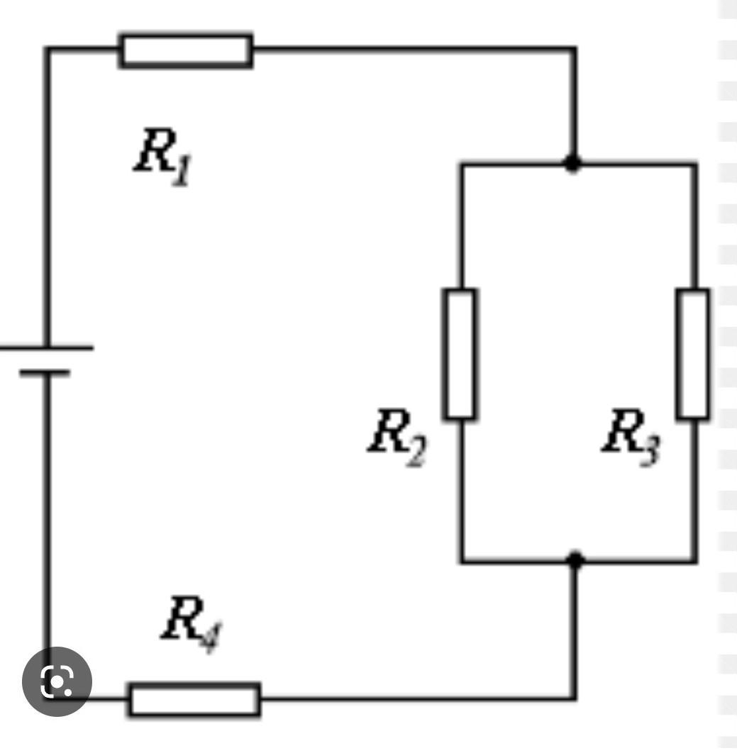 Знайдіть загальну силу струму в колі, (див. рисунок), якщо 1 = 5,4 Ом, R2 = 3 Oм, R3 = 2 Ом, R4 = 4,4 Ом, ЕРС джерела струму 12В, а внутрішній опір 1 Ом. ( только пожалуйста с "Дано:")