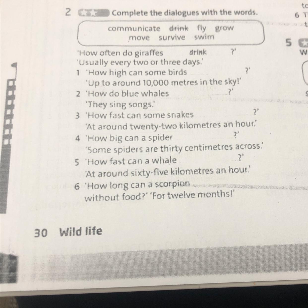 5 'How fast can a whale swim?' 'At around sixty-five kilometres an hour.'