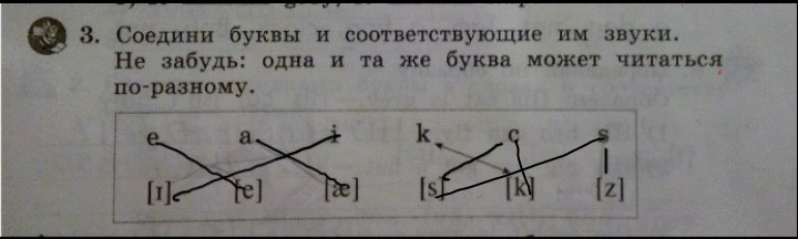 Соедини буквы и соответствующие им звуки.Не забудь: одна и та же буква может читаться по-разному.Помогите мне пожалуйста. e a i k c s {i} {e} {ae} {s} {k} {z}