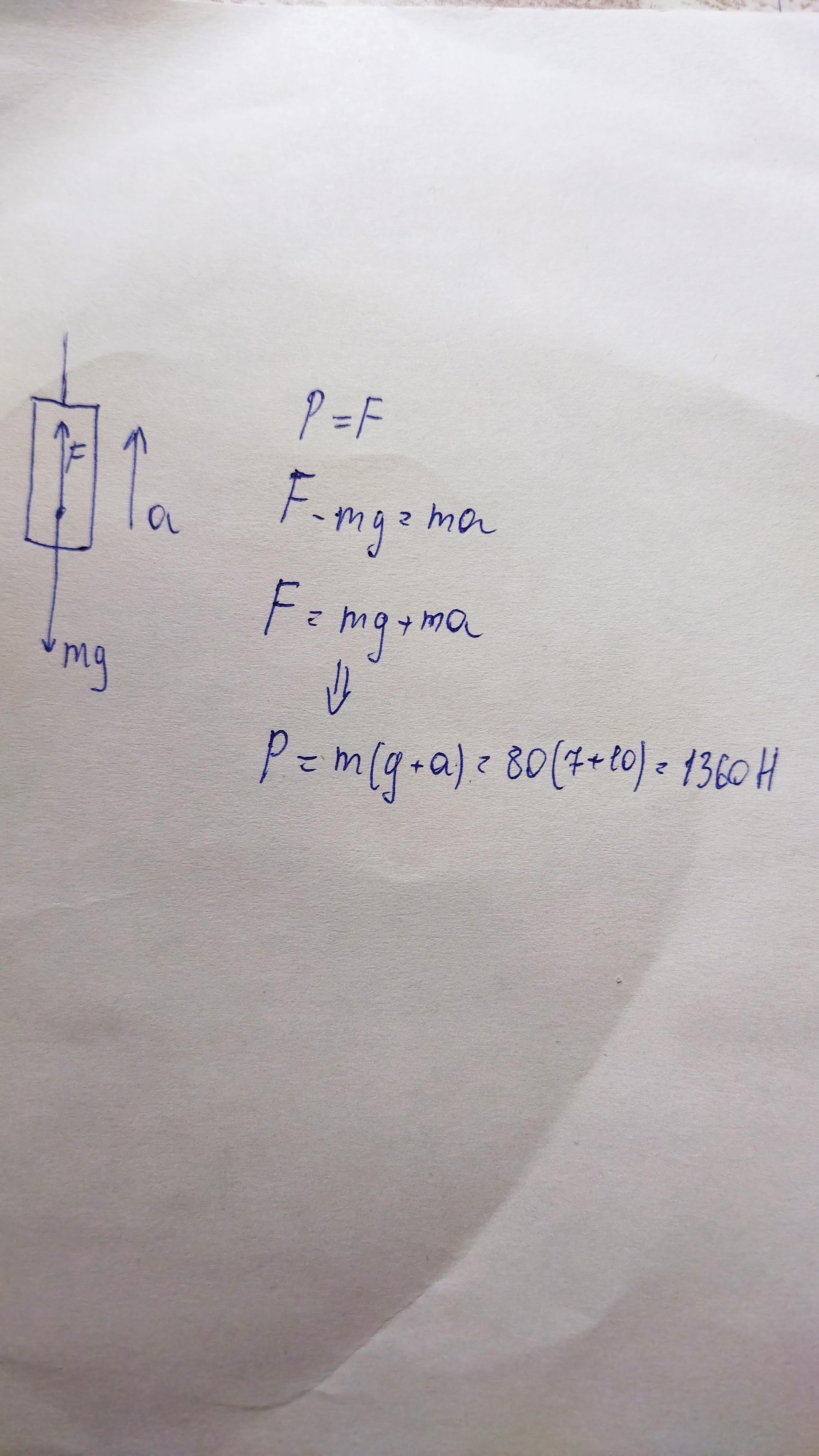 1) Человек массой 80 КГ входит в лифт. Лифт начинает двигаться наверх с ускорением 7 М/С^{2}. Определите вес человека