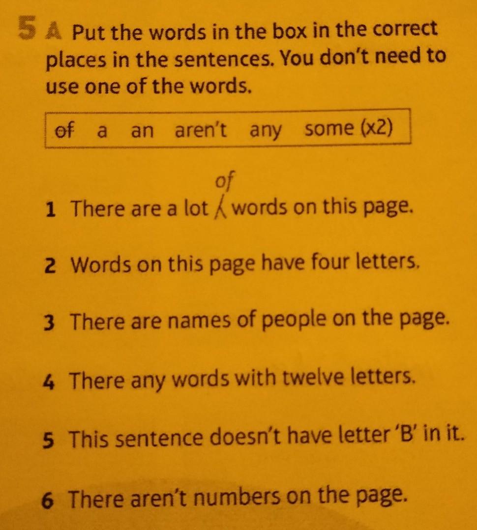 of, a, an, aren't, any, some (x2).
