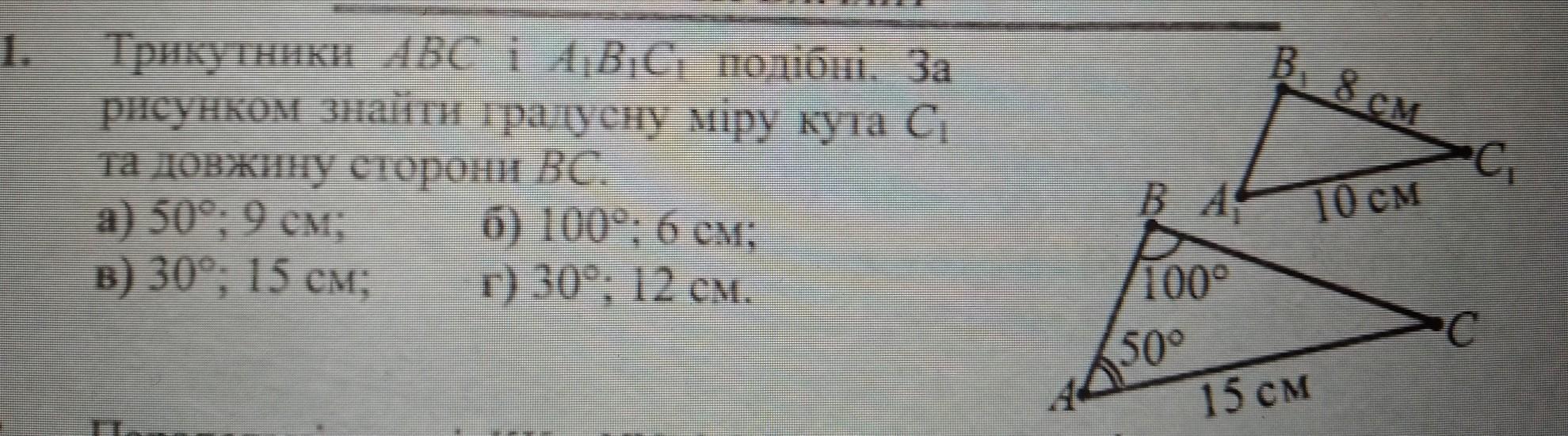 1) Якщо ΔАВС∞ΔА₁В₁С₁, їхні кути рівні ,∠С=∠С₁=180*-100*-50*=30*