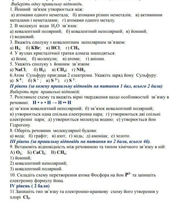ІІІ рівень (за правильну відповідь на питання по 2 бали, всього 4б).