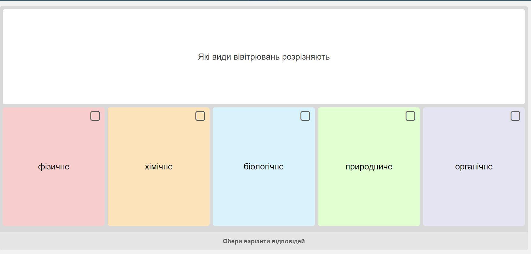 Ответ: Фізичне, Хімічне, Біологічне вивітрювання