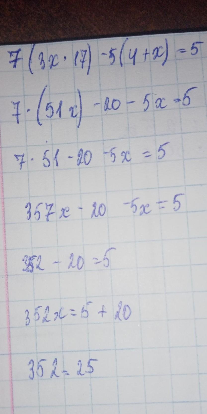 5. Розв'яжіть рівняння: 7(3x17)-5(4+ x) = 5; даю 10 балів