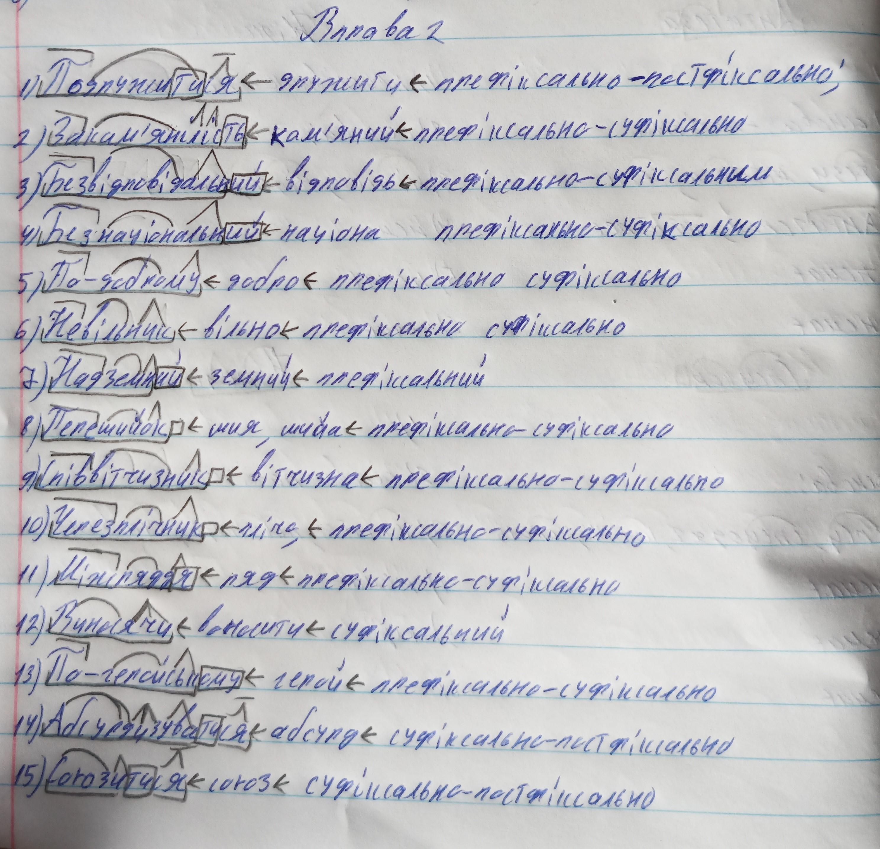 ДОМАШНЯ РОБОТА ВПРАВА 2. Доберіть твірні слова і з’ясуйте спосіб творення, вказавши словотвірні засоби. Зразок:
