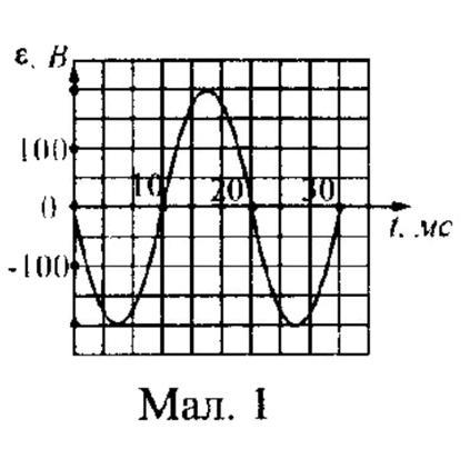 Срочно!! На малюнку 1 зображено графік залежності ЕРС змінного струму від часу. Визначити період коливань та амплітудне значення ЕРС??