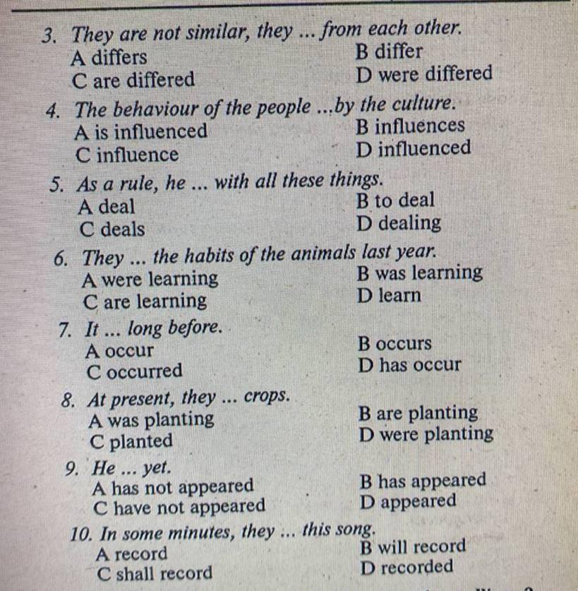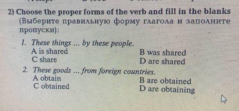 Choose the proper forms of the verb and fill in the blanks (Выберите правильную форму глагола и заполните пропуски):