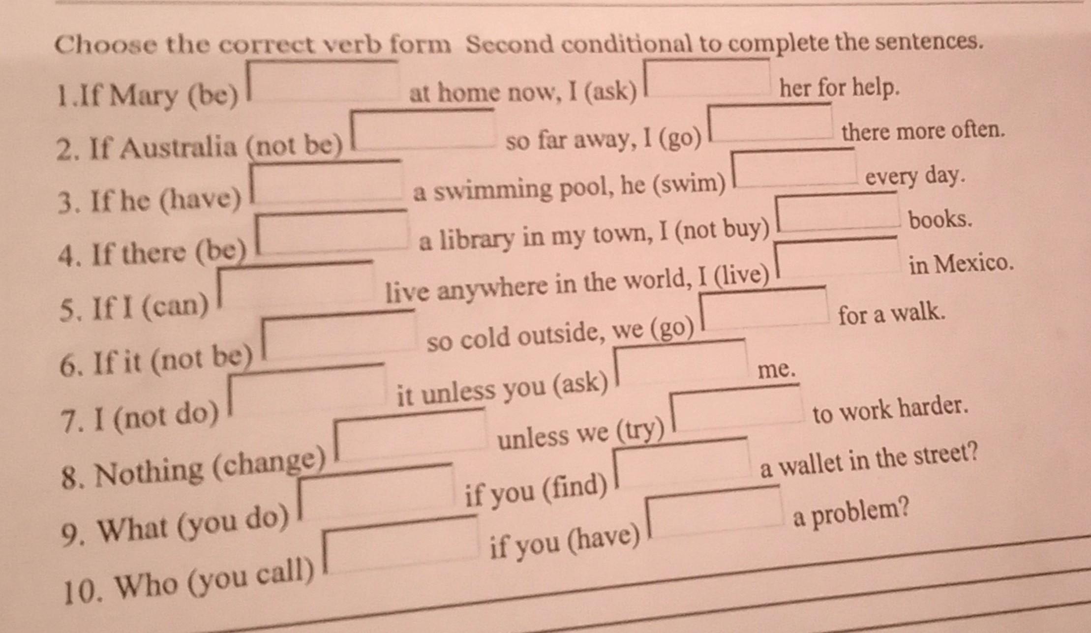 Choose the correct verb form Second conditional to complete the sentences