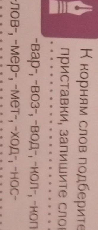 К корням слов подберите приставки, запишите слов -вар-, -воз-, -вод-, -кол-, -коп- лов-, -мер-, -мет-, -ход-, -нос-