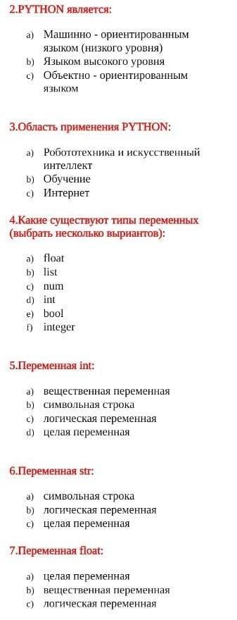 - float: Вещественное число (Плавающая точка): 1.5, 0.9, 10.5