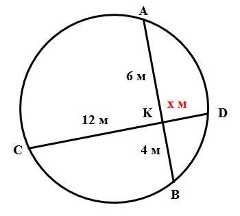 Перевод: Хорды AB и CD пересекаются в точке К. AK=6 м, BK=4 м, CK=12 м. Найти KD.