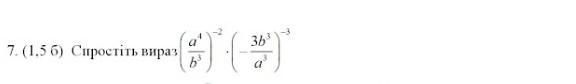 (\frac{b ^{3}}{a ^{4} } )^{2} *(-\frac{a ^{3} }{3b^{3} } )^{3} =\frac{b ^{6} }{a ^{8} } *(-\frac{a^{9} }{^{27b ^{9} } } )=