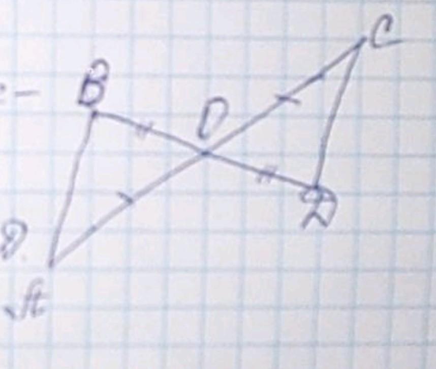 відрізки AC і BD перетинаються в точці O, причому AO=OC і BO=OD. Доведіть, що AB=CD.