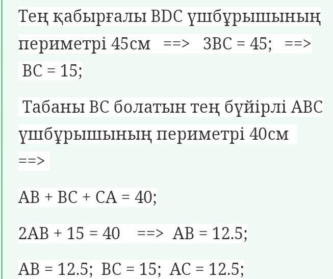 периметрi 40 см-ге, ал тең қабырғалы BCD ушбурышынын