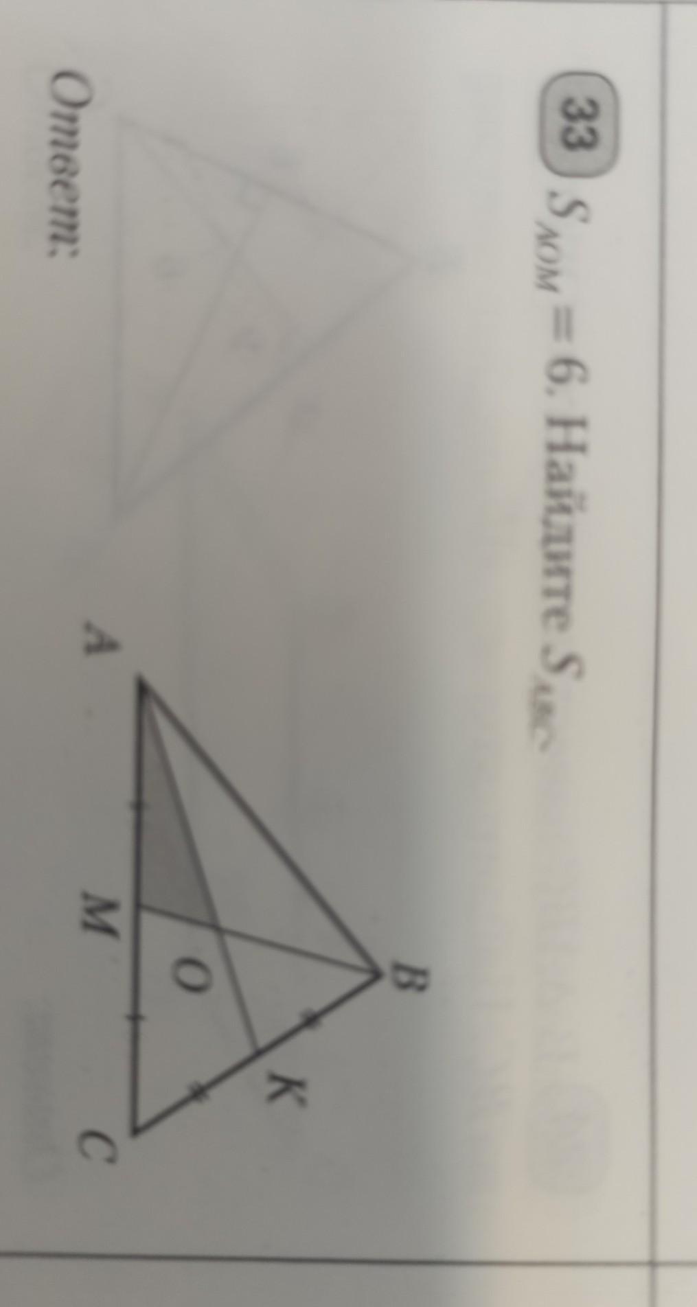 S(∆ABC)=6*S(∆AMO)=6*6=36
