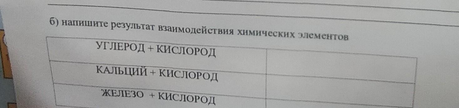 б) напишите результат взаимодействия химических элементов УГЛЕРОД+ КИСЛОРОД КАЛЬЦИЙ + КИСЛОРОД ЖЕЛЕЗО + КИСЛОРОД