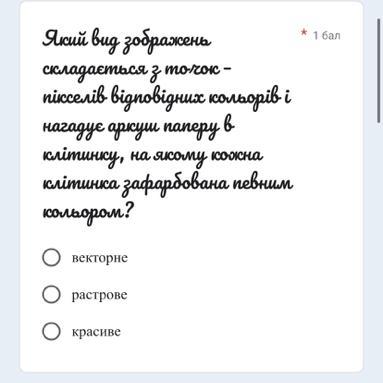 Відповідь: Растрове зображення є масивом кольорових точок (пікселів). Обробка растрової графіки здійснюється растровими графічними редакторами. Растрові зображення зберігаються у різних графічних форматах.