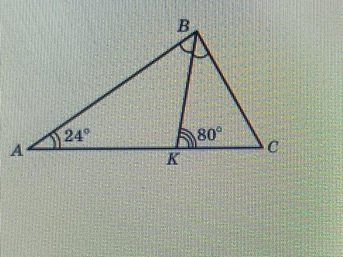 6. Вiдрiзок ВК женого на рисунку. Яка градусна мiра кута АВС?