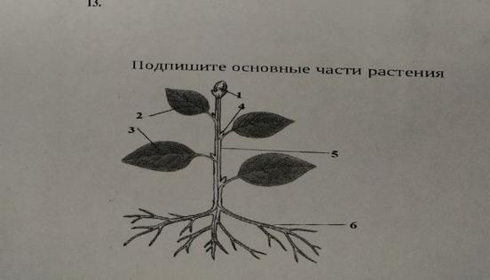 1 плод ,2 и 3 листья,4 ветка,5 стебель,6 корень