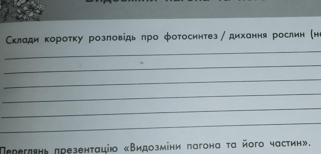 Видозміни пагона та його частин Склади коротку розповідь про фотосинтез / дихання рослин (на вибір). Урок 5 помогите прошу вас