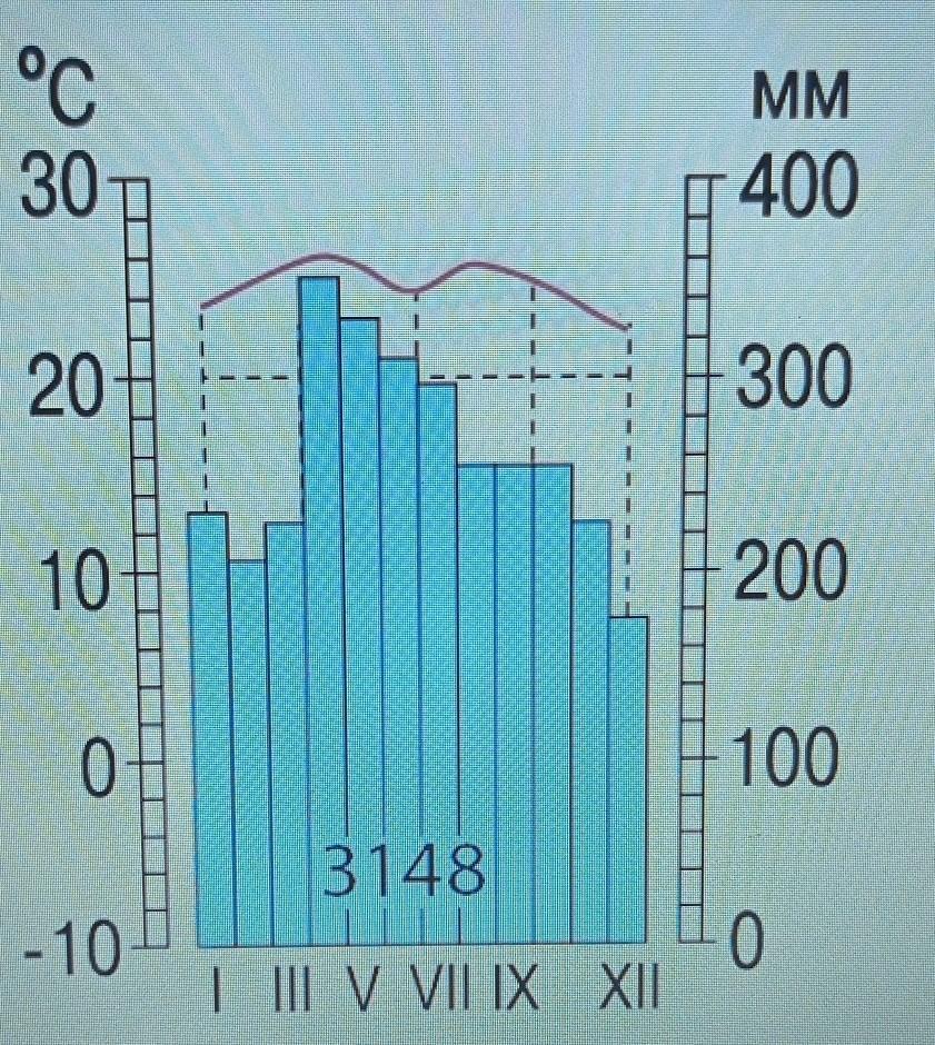 Укажіть географічний об'єкт, якому відповідають кліматичні умови, відображені на кліматичній діаграмі