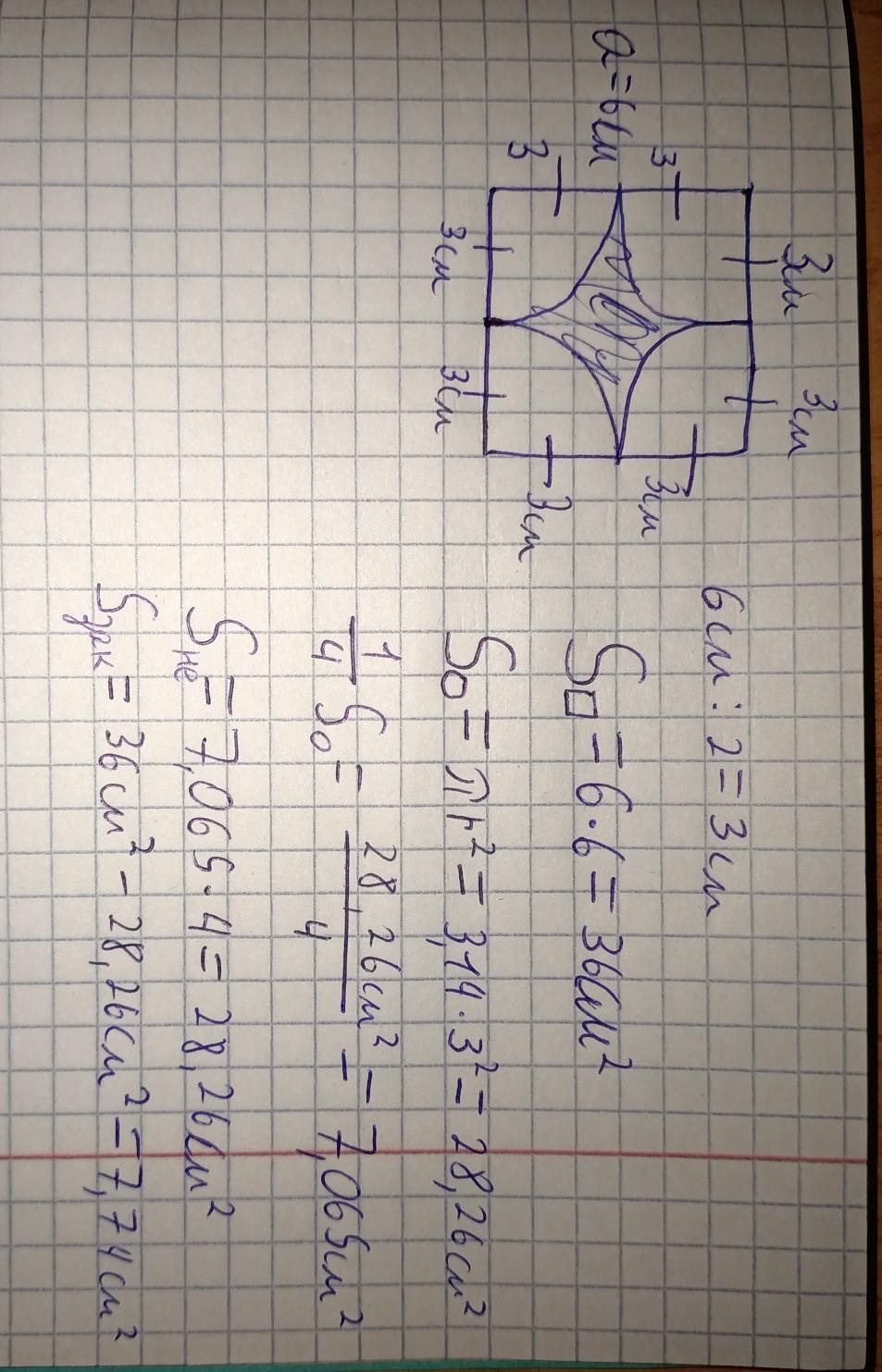 там четко видно что в четырех углах 1/4 круга поэтому площадь целого круга разделил на 4 а потом снова умножил на 4 потому что их там 4 штуки
