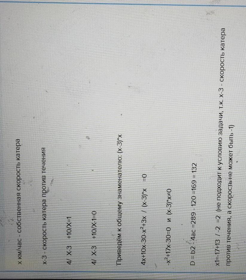 СРОЧНО Катер прошел по озеру 3 км и против течения реки 4 км, затратив на весь путь - 1ч. Скорость течения реки 3 км/ч. Найдите скорость катера против течения.