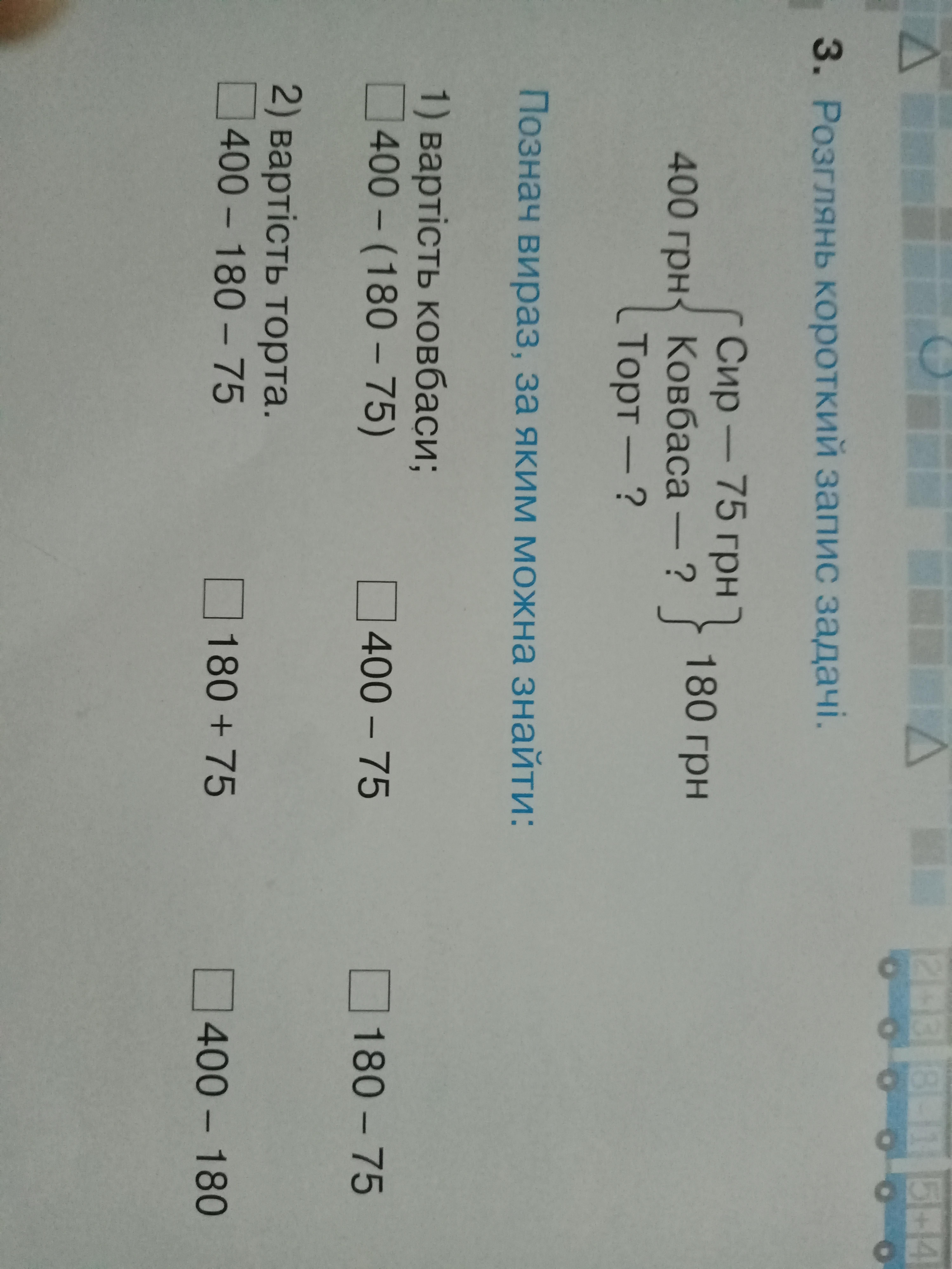 400-(180-75)=105(грн)-ковбаса