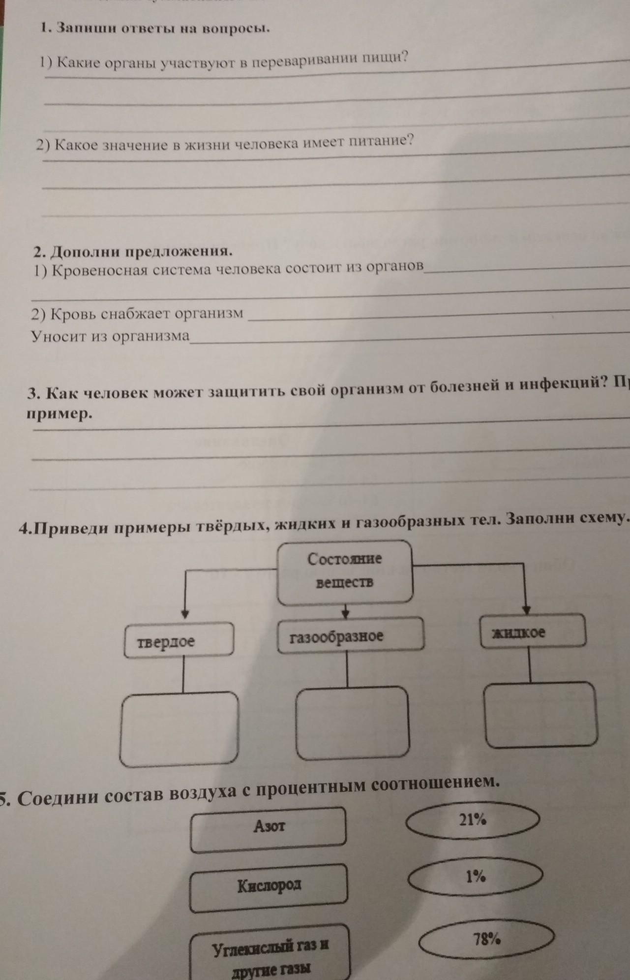5. азота 78 кислорода 21 и углекислого газа и другие 1%