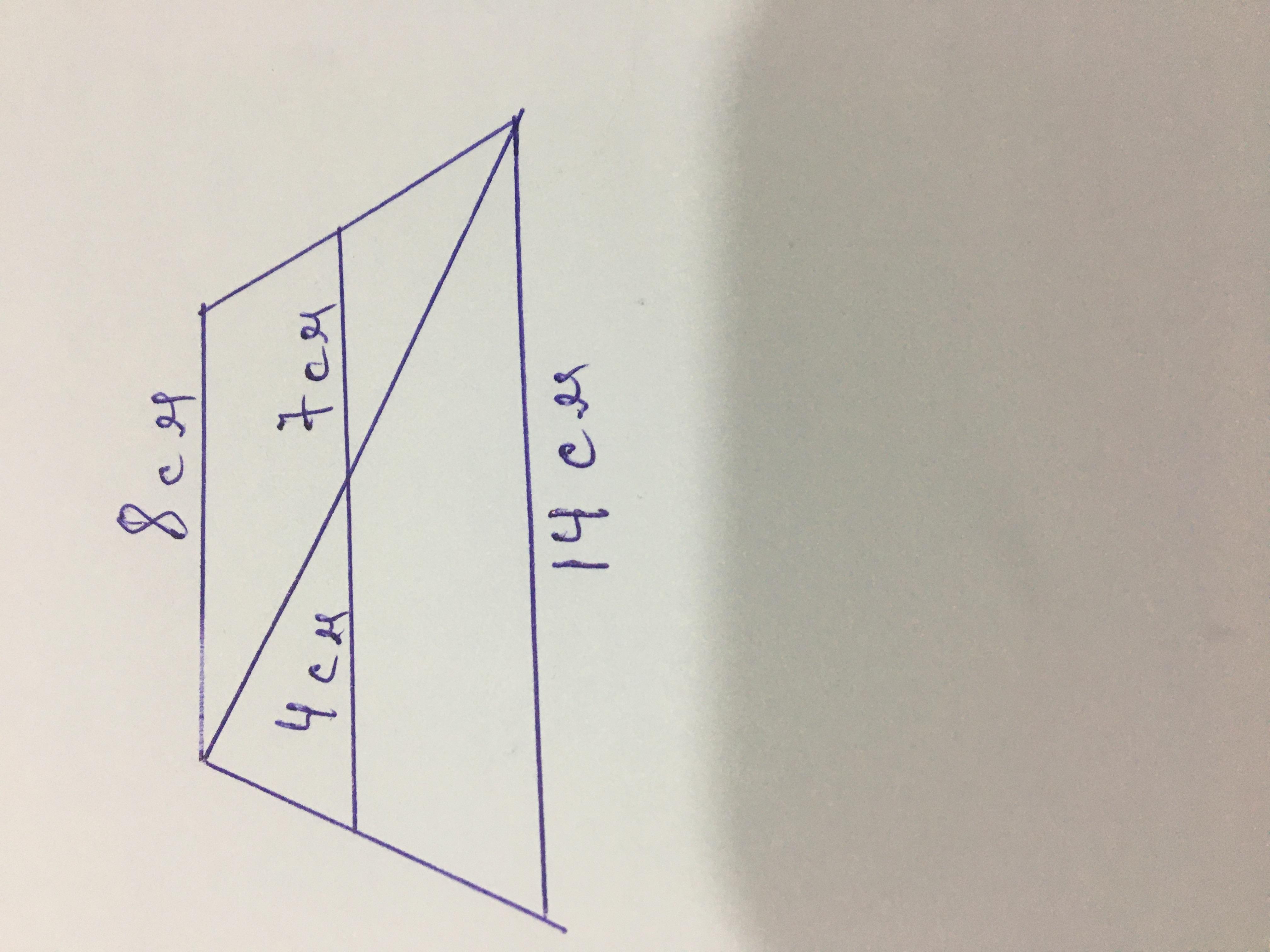 Діагональ трапеції ділить її середню лінію на відрізки, один з яких на 3см менший від іншого. Знайти меншу основу трапеції, якщо її більша основа дорівнює 14см. (з малюнком якщо можна)