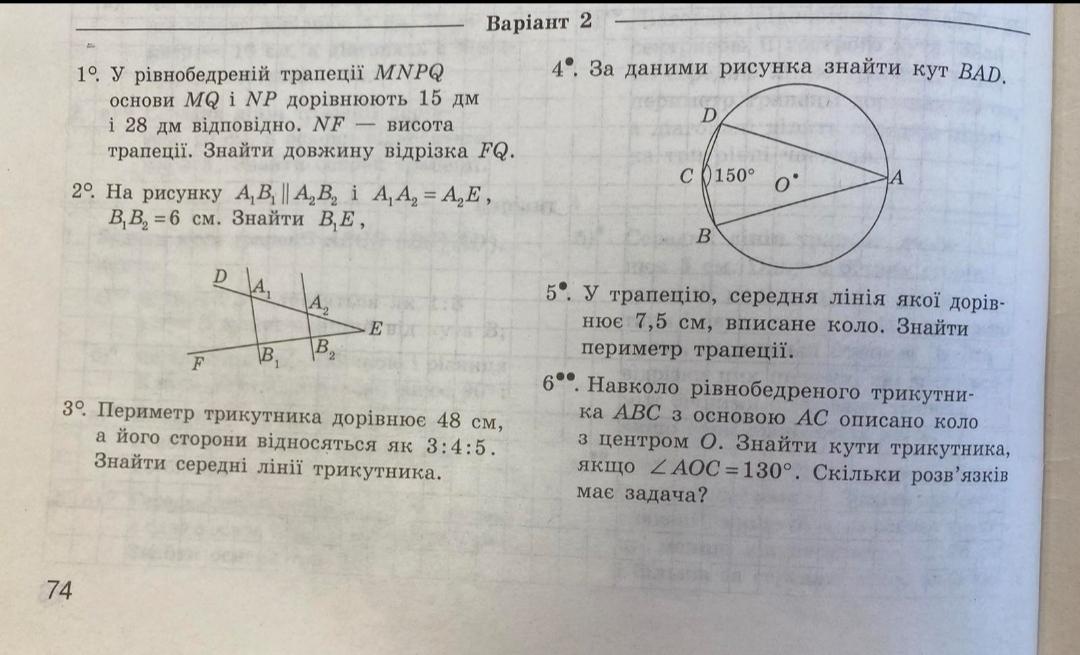средняя линия треугольника параллельна основанию и равна половине основания.