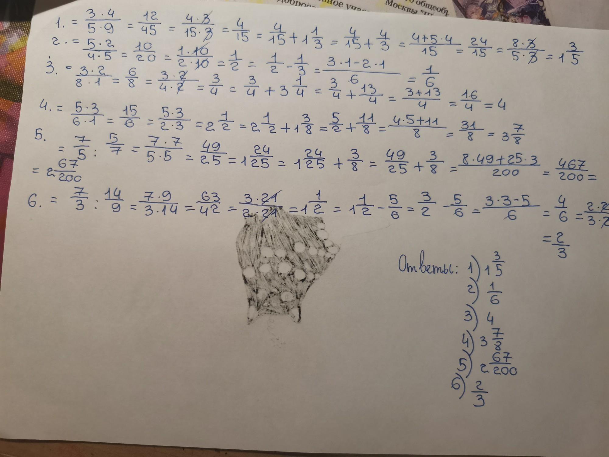 приношу извинения за чёрноя пятнышко на бумаге, надеюсь, все так, через калькулятор дробей проверяла :,)