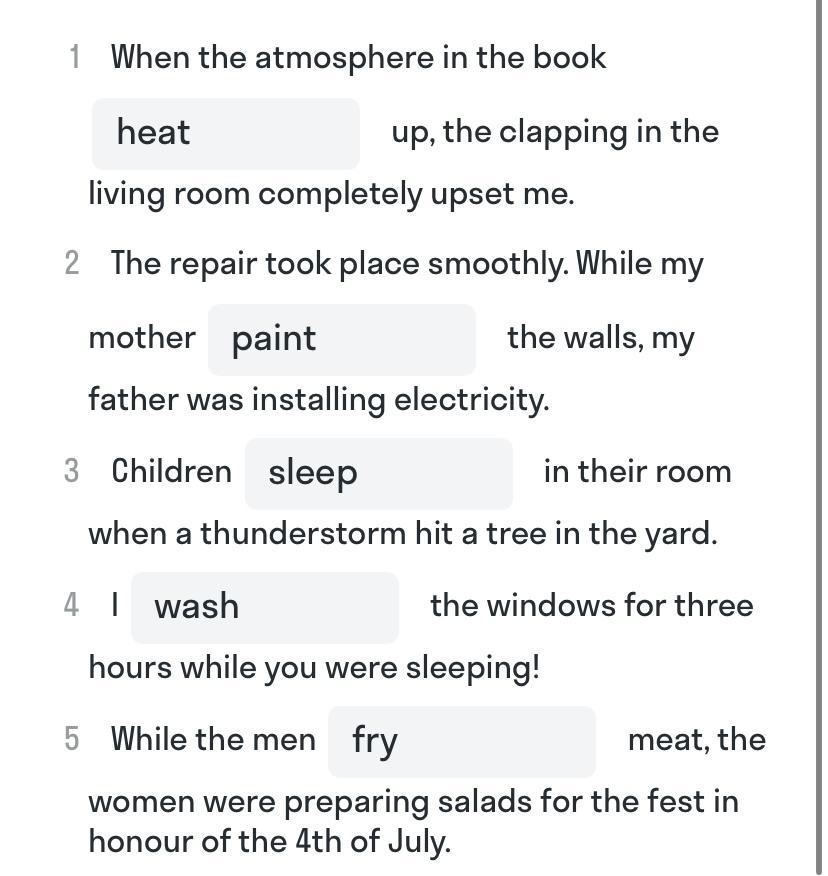 2 The repair took place smoothly. While my mother was painting the walls, my father was installing electricity.