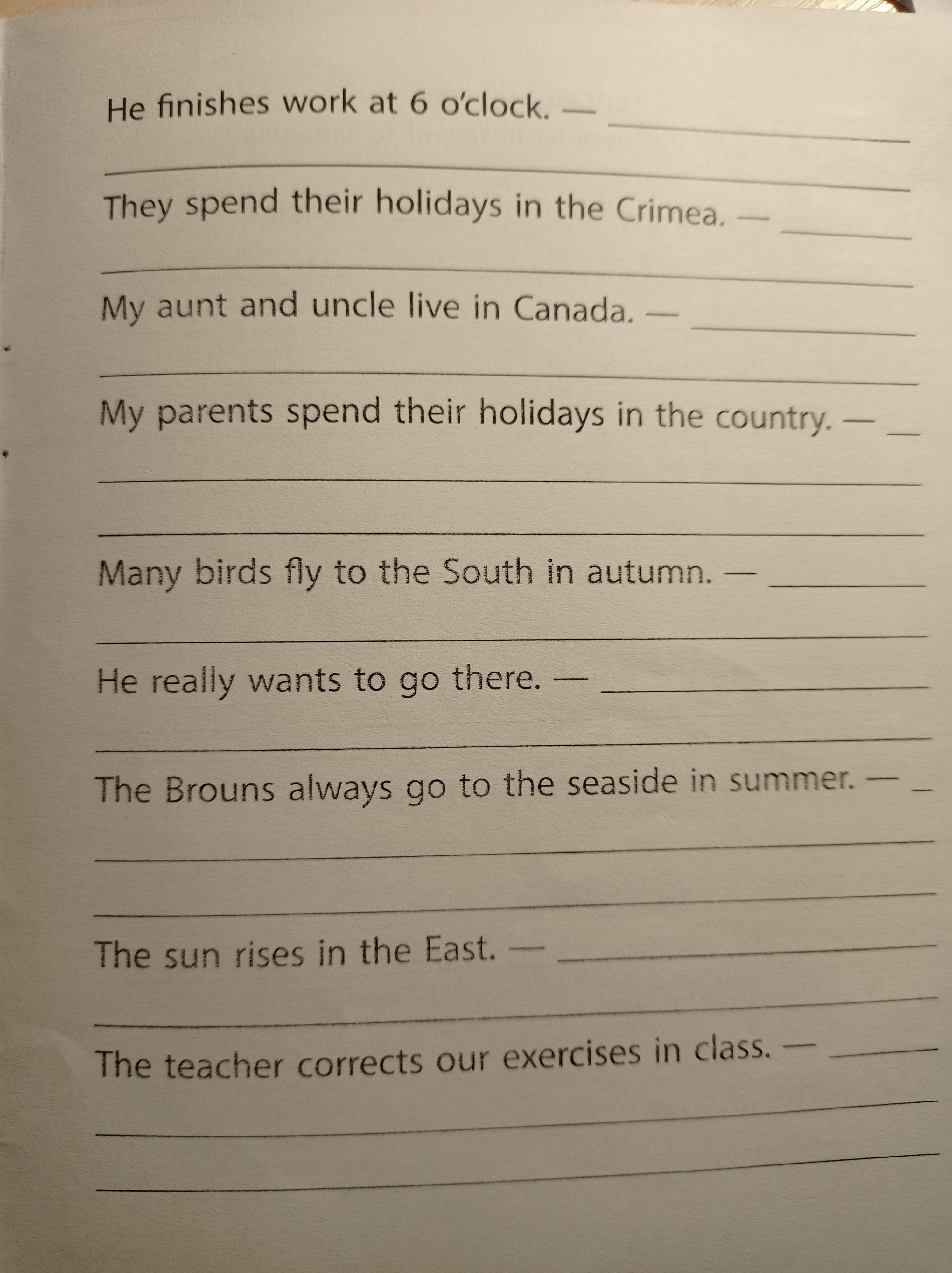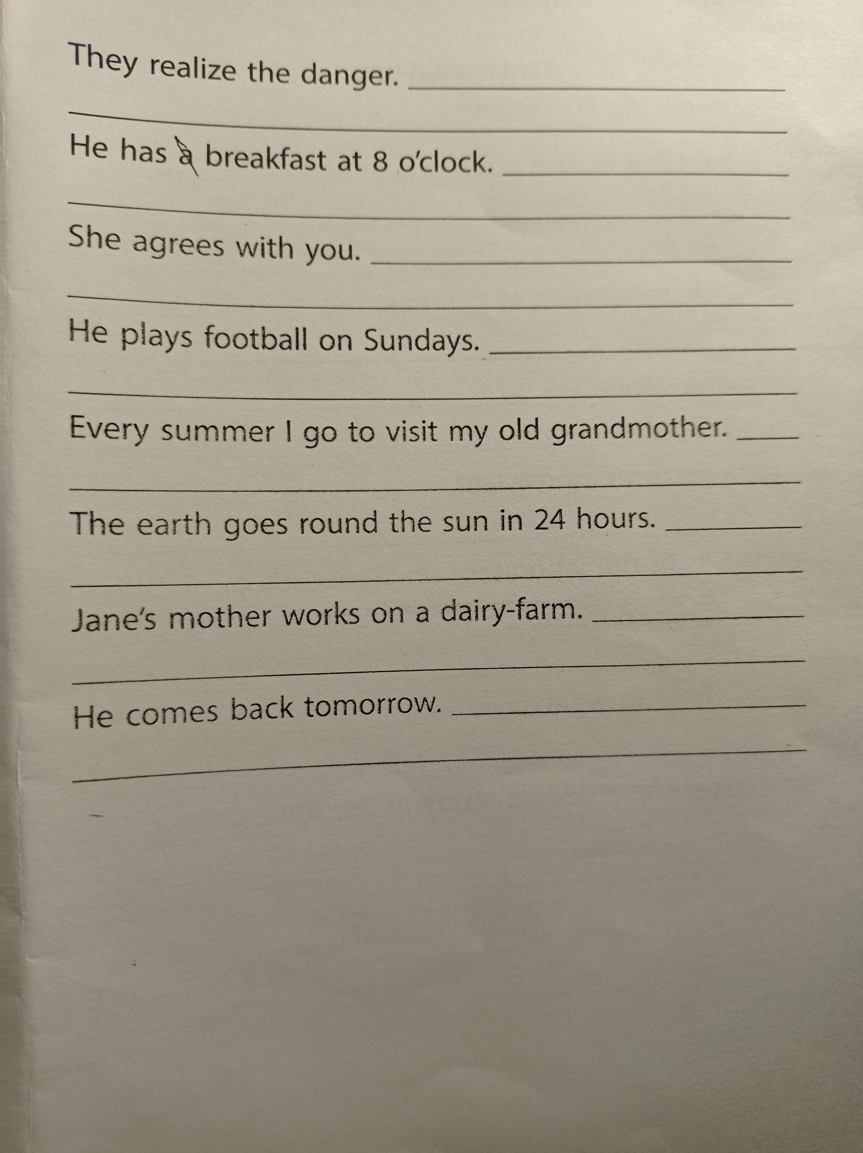 6. We don't listen to the radio in the morning. Do you listen to the radio in the morning?